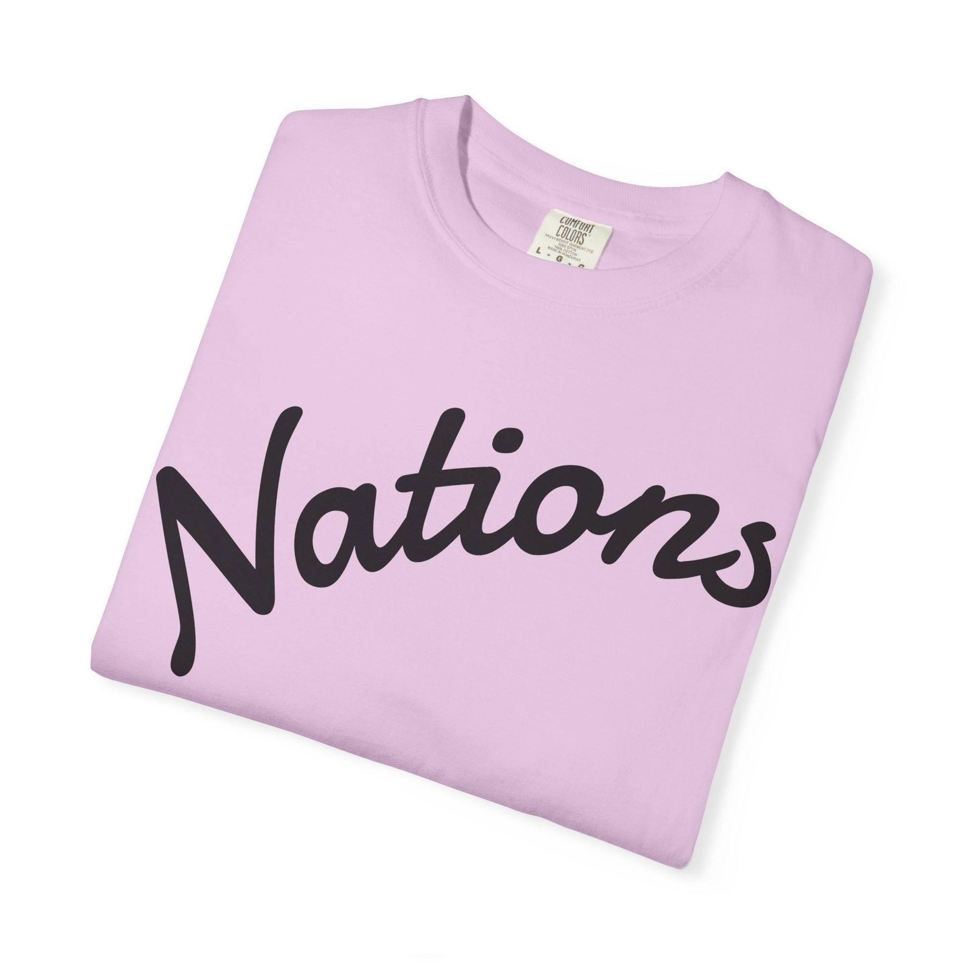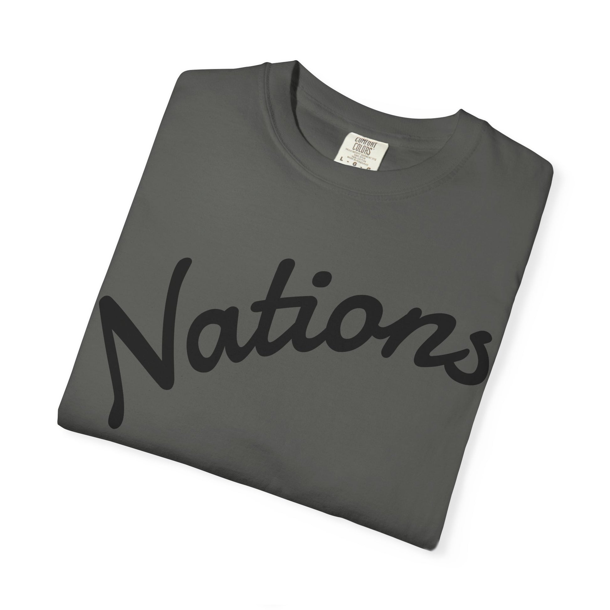This heavyweight garment-dyed tee brings quiet confidence to your everyday wardrobe. Soft from the first wear, the shirt’s vintage-like dye and relaxed cut let it sit comfortably over jeans, layered under a jacket, or worn solo on warm mornings. The front lettering—bold, handwritten “Nations” with a subtle stamped subtitle—reads like a worn team emblem or a found poster, giving the tee a nostalgic, lived-in feel. It’s made to be reached for on slow weekends, during road trips, and at community meetups where comfort and understated style matter more than logos. The knit construction and durable stitching promise a slow-fade patina rather than quick wear, so the shirt becomes part of your rotation and a quiet companion to stories you collect along the way.