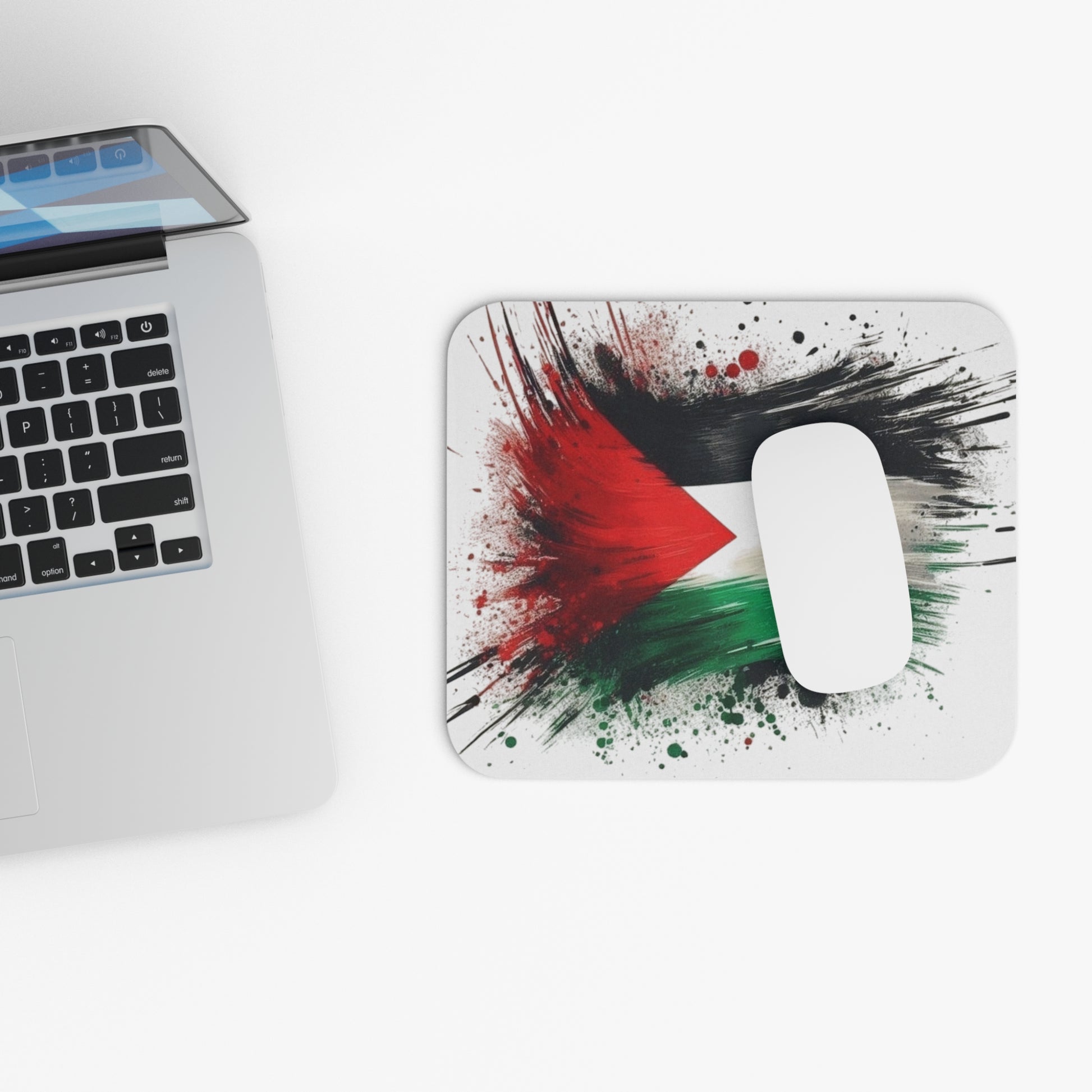 Wake up your desk with a pulse of color and quiet pride. This rectangular mouse pad features a bold, painterly rendition of the Palestinian flag — brushstrokes and splatters that feel lively and handcrafted. The textured top gives controlled gliding for everyday work or long creative sessions, while the thin foam core keeps your mouse steady without adding bulk. It settles into your workspace like a small, meaningful statement: energetic, rooted, and unmistakably personal.